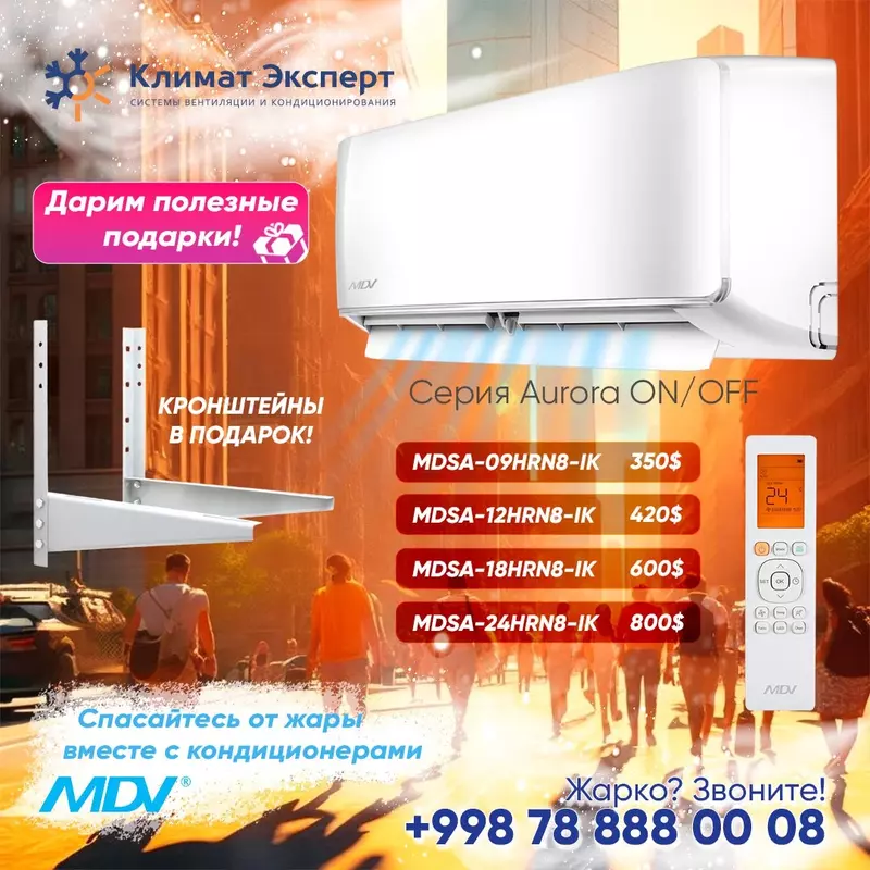 Акция! При покупке кондиционера MDV Aurora On/off дарим полезные подарки!Выгодная покупка!При покупке кндиционера MDV Aurora On/off дарим кронштейн в...